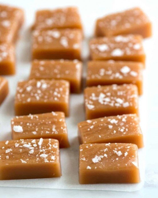 После остывания посыпьте карамель крупной солью, нарежьте на маленькие конфетки и подавайте к столу с удовольствием!