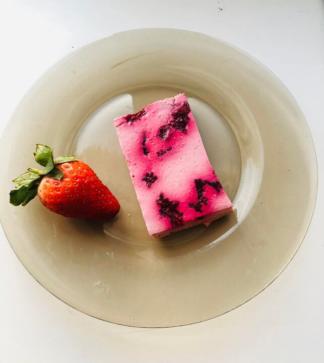 Вооружившись блендером, смешайте Рикотту с ягодами и объедините с оставшейся порцией желатина. Выложите массу в форму или глубокую тарелку.