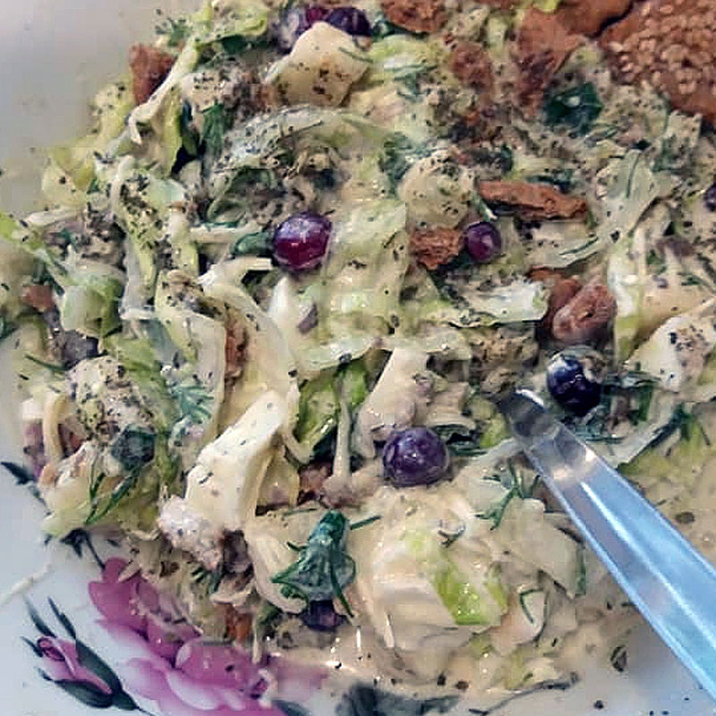Все ингредиенты тщательно перемешать, затем добавить специи и травы по вкусу. Этот салат станет ярким дополнением к любому столу.