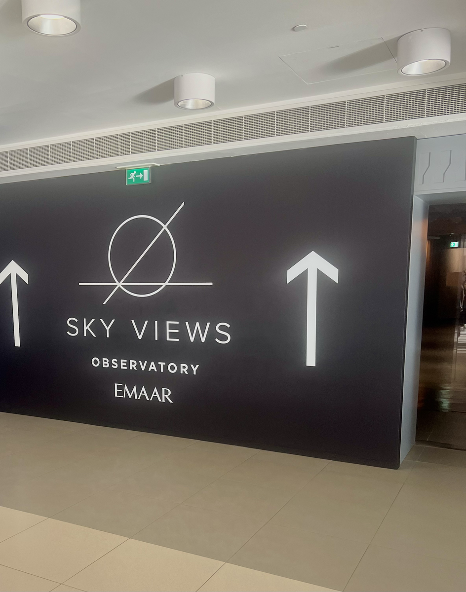 Чтобы попасть в ресторан, нужно обратиться к табличке «Обсерватория Sky View», затем следовать к лифту, который поднимет на 54 этаж отеля. На этом уровне открывается проход к инфинити-бассейну с баром, хотя стоит помнить о необходимости депозита для не-гостей отеля. Сама кухня расположена неподалеку.