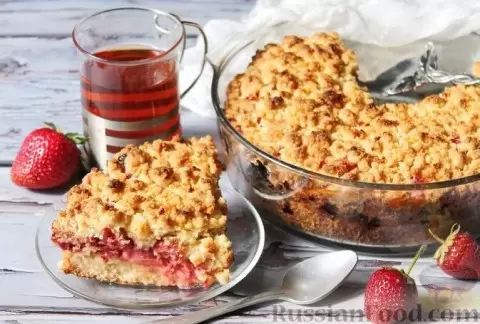 Заключительным аккордом станет насыпной пирог, который не только прост в приготовлении, но и способен покорить сердца. Нежная песочная основа, сладкая клубничная начинка и хрустящая корочка — этот десерт прекрасно подойдет для любого летнего торжества.