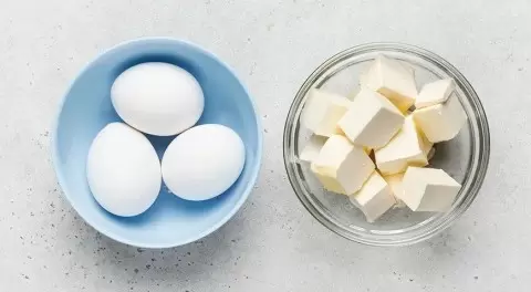 Для начала следует подготовить маргарин, нарезав его крупными кусками и оставив при комнатной температуре до размягчения. Это может занять около 30-60 минут, в зависимости от температуры в помещении. Не забывайте про яйца — их стоит заранее достать из холодильника.
