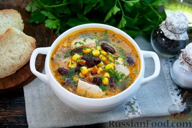 - Острый куриный суп со сливками и кукурузой. Этот яркий вариант не оставит равнодушным никого. Благодаря добавлению перца чили и сливок, суп получается сытным, жгучим и одновременно кремовым на вкус.