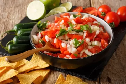 Помидоры являются мощными антиоксидантами, замедляющими процессы старения и улучшая состояние сердечно-сосудистой системы. В комбинации с чесноком, который способствует улучшению обмена веществ и укрепляет иммунитет, это блюдо становится не только вкусным, но и полезным для здоровья. Острый перец добавляет ощущения остроты и помогает справиться с депрессией, предоставляя мягкое слабительное действие. Закуска подходит для разных диет и даже при похудении!