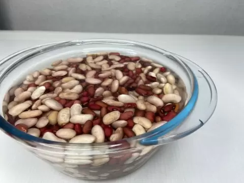 Сегодня для приготовления используются различные виды фасоли, в этом рецепте — красная и белая. Предварительно их заливают холодной водой и оставляют на ночь. В процессе готовки можно использовать как афганский казан, так и обычную кастрюлю с толстым дном. Главное — комфортно следить за процессом и иметь возможность по необходимости добавлять воду.