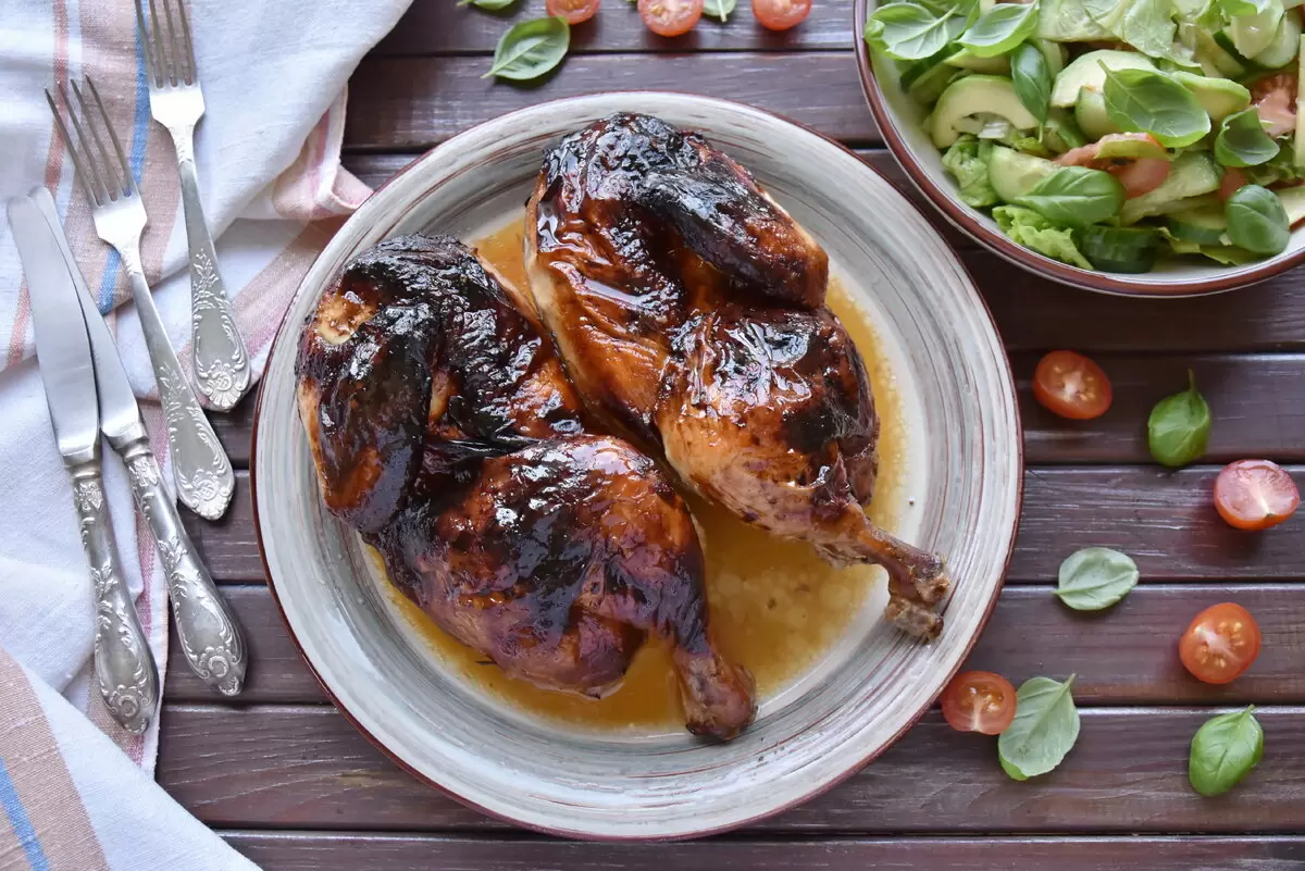 Когда курица готова, обмажьте её маринадом со всех сторон и оставьте мариноваться в холодильнике на час. Это позволит мясу пропитаться вкусами и стать по-настоящему сочным.