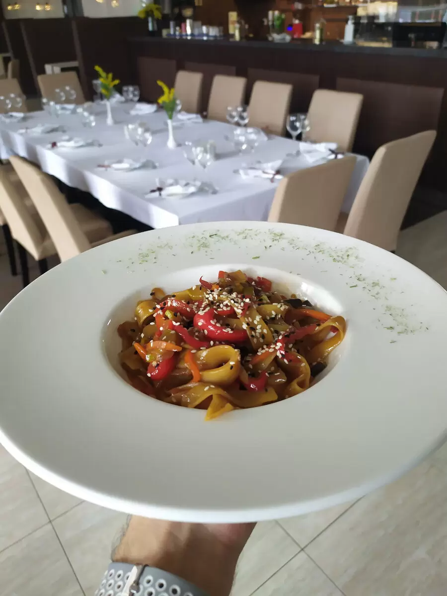 Для этого рецепта понадобятся морковь, лук и кабачок. Овощи нарезаются соломкой и обжариваются на растительном масле перед добавлением заранее отваренной пасты. Заправить следует соевым соусом с чесноком — и быстрое угощение готово!