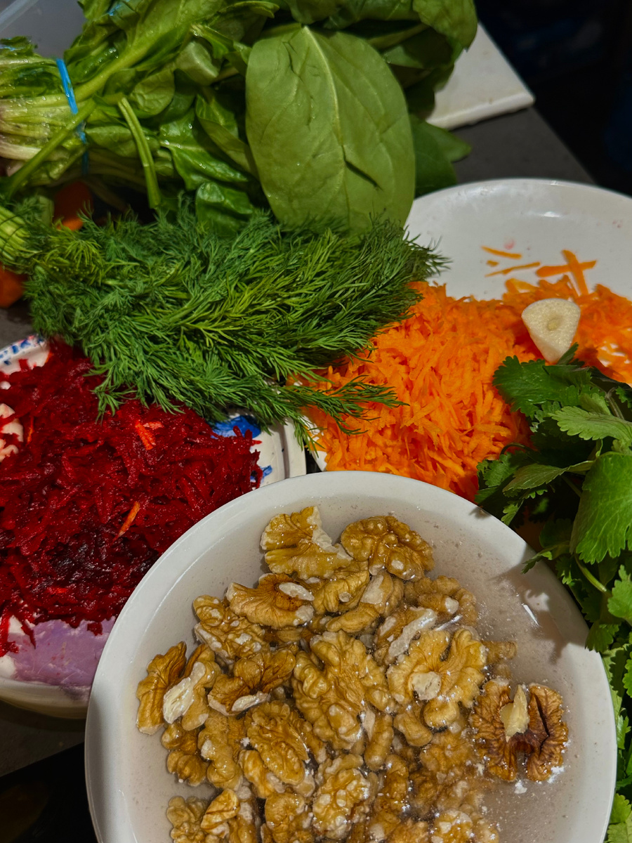 - Сочная зелень: петрушка, кинза, укроп и шпинат — придают яркий аромат и свежесть.