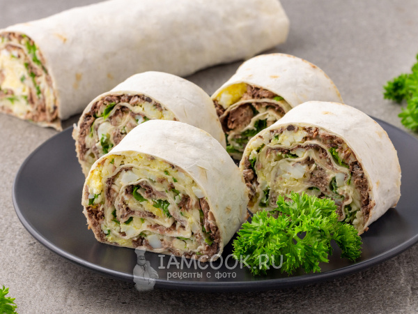Рулет из лаваша с тунцом, яйцом и сыром