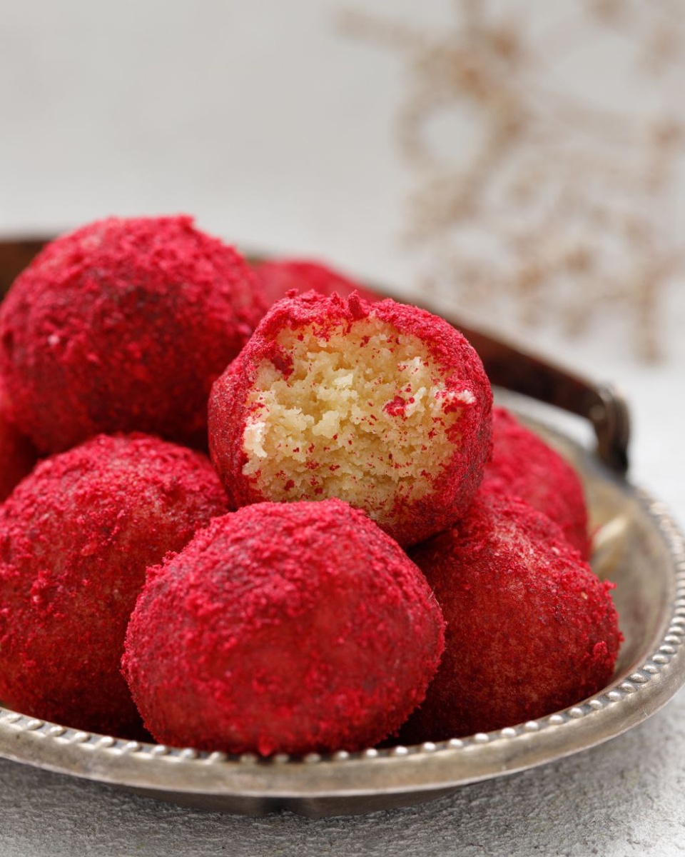 Тонкий аромат миндаля и легкая сладость сиропа топинамбура делают эти конфеты по-настоящему уникальными. Дополненные ягодной кислинкой порошка малины, сладости приобретают легкость и насыщенность, которая покоряет каждый вкус. Без яиц, молока и глютена, эти конфеты будут по душе всем, кто заботится о своем здоровье.