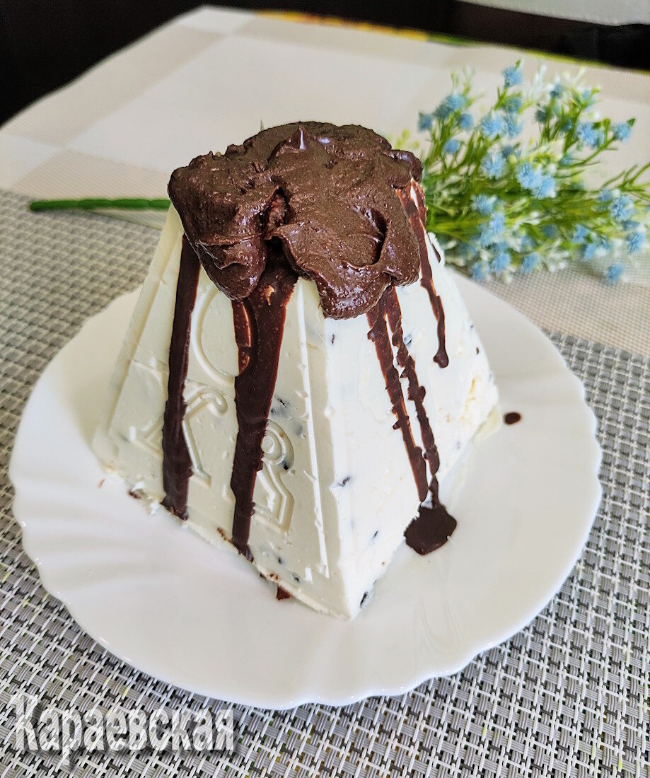 Когда пасха затвердеет, извлеките её из формы и полейте шоколадной глазурью. Уберите во холодильник, чтобы всё как следует промариновалось. И вот, кето-пасха готова порадовать своих вкусовых любителей!