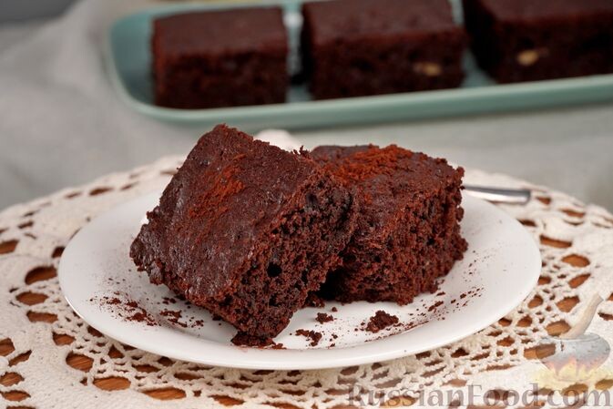 - Банановый брауни — изысканный десерт с глубоким шоколадным вкусом, который обязательно оценят любители сладкого. Основу составляет банановое пюре и сливочное масло, а добавление какао-порошка делает его просто неповторимым.