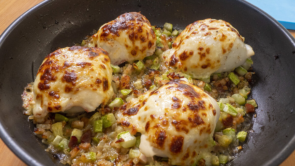 Представляем идею для удивительного ужина, который порадует всей семьей. Фаршированные кальмары в овощном соусе с добавлением копченостей — это сочетание, которое неизменно вызывает восторг, пишет Шеф-повар Василий Емельяненко.