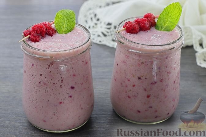 - Малиновый коктейль с бананом: Нежный и сладкий напиток с ярким малиновым вкусом, идеально дополняющий любой завтрак.