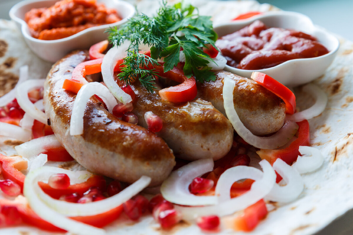 Если времени мало, то что может быть проще? Нужно всего лишь подготовить колбаски, лаваш и выбрать соус с парой овощей для гарнира.