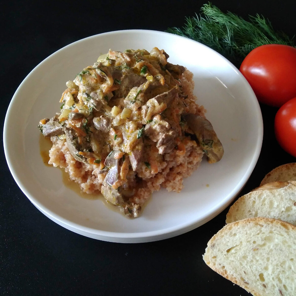 Печень по-строгановски получается невероятно аппетитной, сочной и нежной. Лучше всего её подавать с разнообразными гарнирами: макаронами, картофельным пюре или кашами. Особенно хороша она с полтавской кашей или традиционной гречкой.
