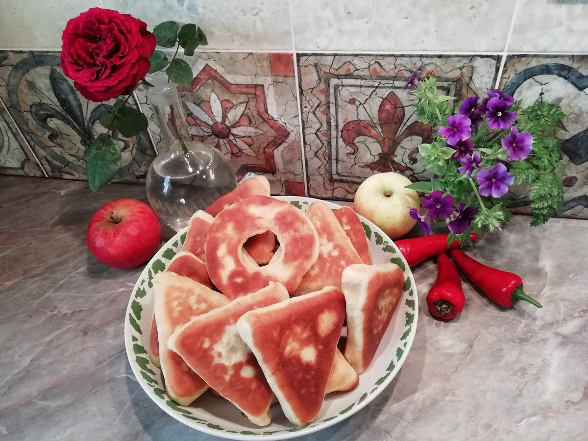 Когда пирожки сформированы, на сковороду наливаем растительное масло и жарим их до золотистой корочки. Семья уже ждёт за столом, а «дырявая» лепешка, нехватившая начинки, уходит к первому счастливчику на кухне — такова традиция, которая началась с бабушки.