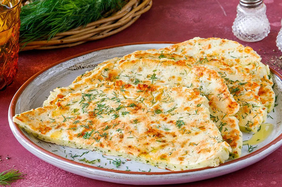 Для начинки сыр натирается на крупной терке. Если используется творог, его стоит смешать с сыром, чтобы получить однородную массу. Тесто разделяют на 8 равных частей, формируют шарики и раскатывают в круглые пласты диаметром 24 см.