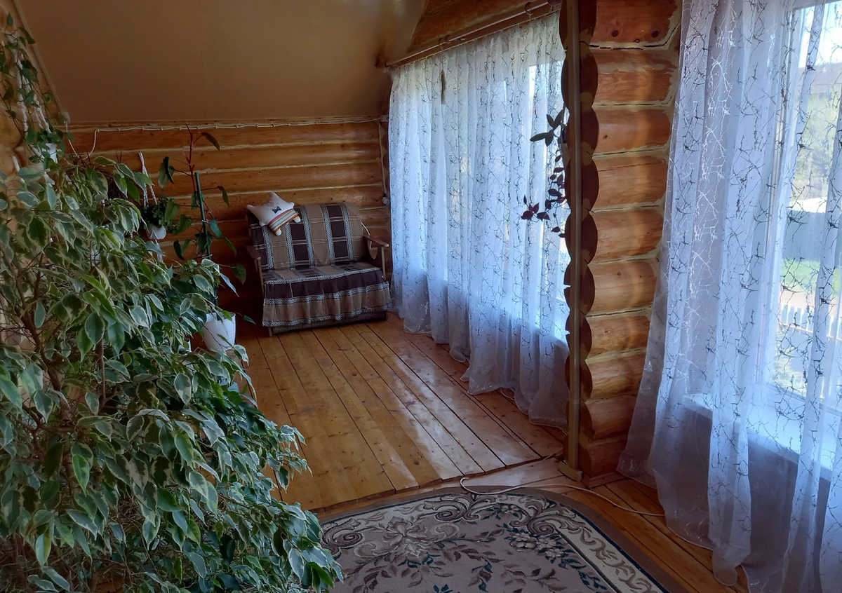 Местные условия создают идеальные условия для роста растений, однако представленная обстановка не добавляет привлекательности. Старый диван и самодельный столик — это, пожалуй, всё, что удается разместить на столь обширной площади. Есть мысли об обустройстве, но всё упирается в финансовые ограничения.