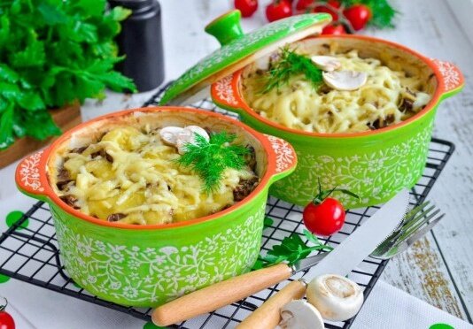 Неожиданный уют: картошка с грибами и сыром в горшочках