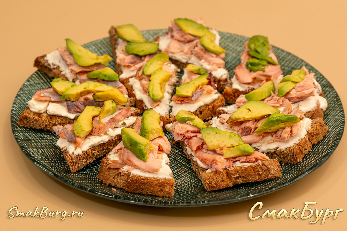 - Нежные кусочки авокадо завершат композицию и придадут бутербродам особую мягкость.
