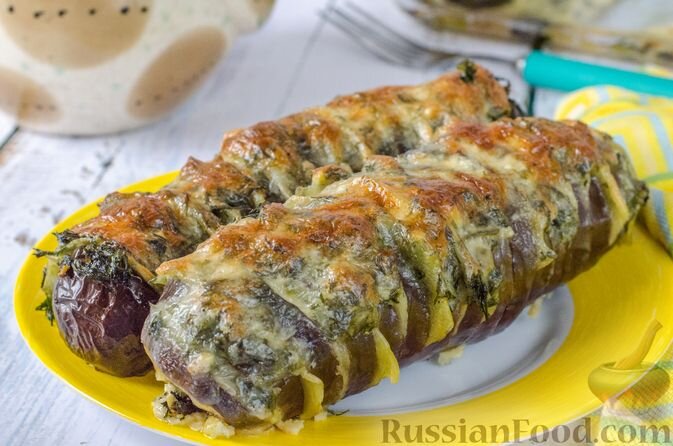 Запеченные баклажаны "Гармошка" с картофелем представляют собой настоящую кулинарную находку. Обилие сочных слоев, укрытых аппетитной корочкой из сыра и свежих зелёных трав, делает это блюдо неотразимым. А в качестве дополнений – тушеные баклажаны с помидорами и сладким перцем, которые великолепно гармонируют с основными блюдами. Каждое из них можно подавать как в горячем, так и в охлажденном виде.