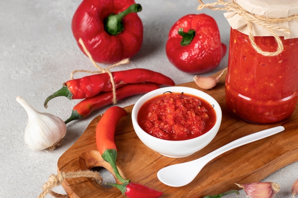 - Аджика из острого перца: для тех, кто предпочитает жгучие ароматы, этот соус станет настоящей находкой.