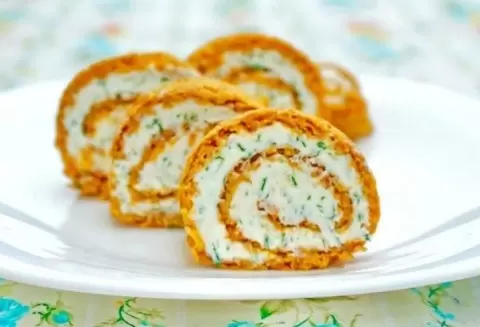 - Рулет из сырой моркови: сочетается с нежным сливочным сыром, чесноком и зеленью. Этот блюдо станет ярким акцентом на любом столе.
