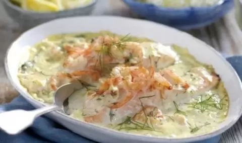 - Для более диетической версии можно исключить муку и сразу тушить рыбу с овощами под сметаной.