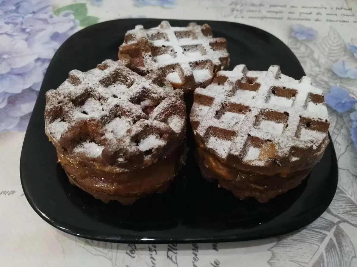 Эти мягкие, чуть рассыпчатые вафли с шоколадной ноткой и ягодной свежестью — настоящий кулинарный шедевр. Благодаря сладкой прослойке из вареного сгущенного молока, угощение становится поистине восхитительным и вызывающим аппетит.