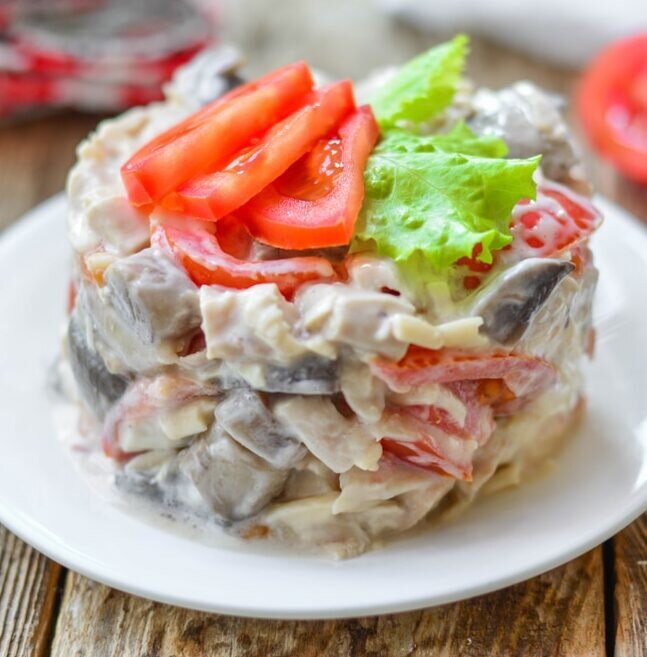 Праздничный салат с курицей и грибами: быстро и вкусно