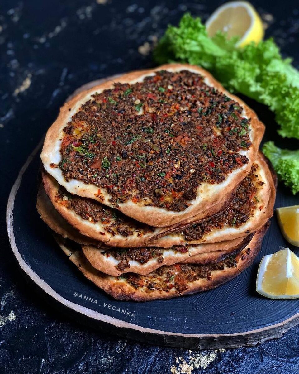 Готовую лепешку подать с ломтиками лимона и свежими овощами для лучшего вкуса. Лахмаджун — это не только вкусное, но и красивое блюдо, которое отлично подойдет как для ужинов, так и для праздничных мероприятий.